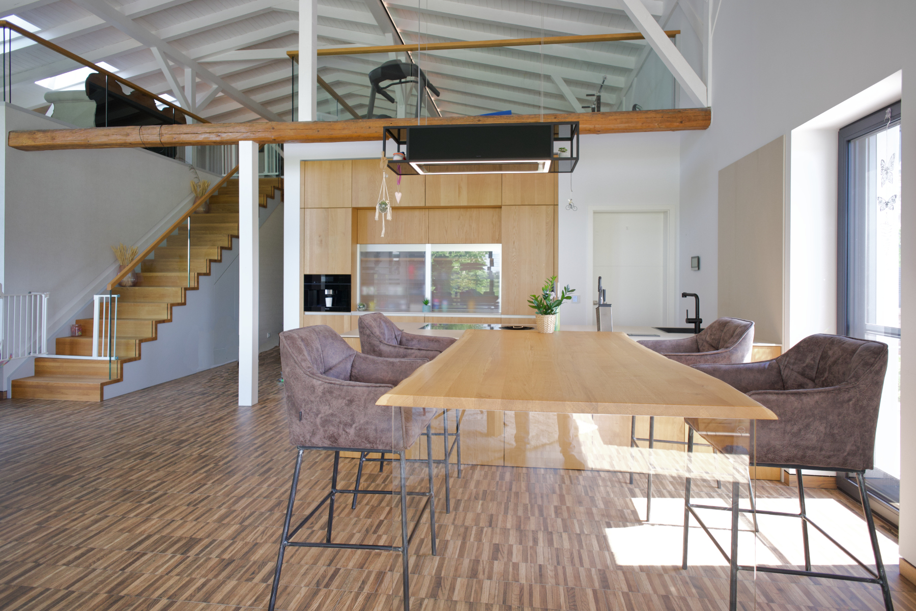 Das Haus verfügt über einen neuen Dachstuhl, der nicht nur funktional, sondern auch ästhetisch beeindruckend ist. Die sichtbare Innenkonstruktion des Dachstuhls verleiht dem Raum eine moderne und zugleich rustikale Atmosphäre, die den Charme des Gebäudes unterstreicht. Die klare Sicht auf die Balken und Sparren sorgt für eine großzügige, offene Raumwirkung und lässt die Decke des Obergeschosses lebendig wirken. Hinzu kommt die Aufdachdämmung, die nicht nur für eine exzellente Wärmeisolierung sorgt, sondern auch zur Reduzierung von Energiekosten beiträgt. Diese hochwertige Dämmung gewährleistet ein angenehmes Raumklima und trägt zur langfristigen Energieeffizienz des Hauses bei.