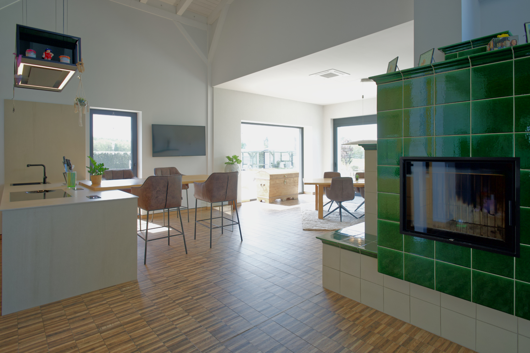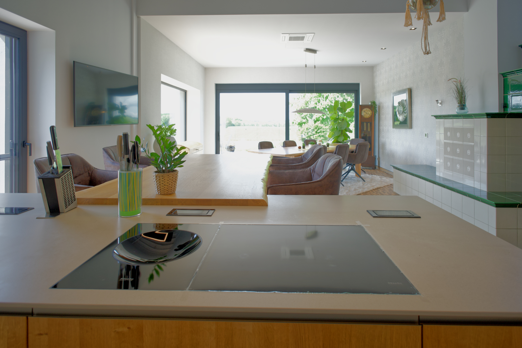 Das Haus wurde komplett mit KNX-Technologie gebaut, was eine smarte Steuerung aller Haustechnik ermöglicht. Integrierte LED-Leuchten sorgen für energieeffiziente Beleuchtung. Für umweltbewussten Strom sorgt eine PV-Anlage mit ca. 11 kWP, ergänzt durch zwei Ladesäulen à 10 kWh für Elektrofahrzeuge. Der 22,90 kW große Speicher garantiert eine stabile Energieversorgung.