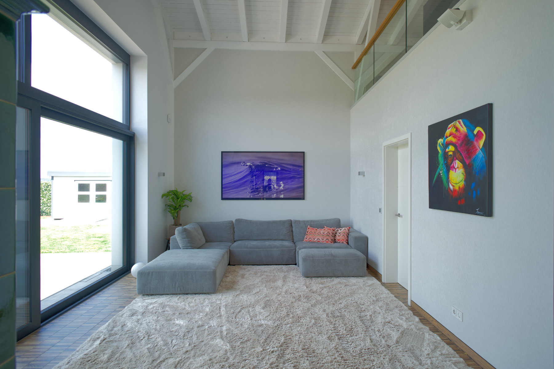Moderne Annehmlichkeiten wie Klimaanlagen im Wohn- und Essbereich im Erdgeschoss, den Schlafzimmern im Erd- und Dachgeschoss sowie der Galerieetage sorgen für angenehme Temperaturen. Sicherheit wird großgeschrieben: Das Haus ist mit einer Alarmanlage, Rauchmeldern und einer Videoanlage mit 10 intelligenten Kameras inklusive Speicher ausgestattet. Der Alarm ist in das Sicherheitssystem integriert und mit Sensoren im Zaun verbunden.
