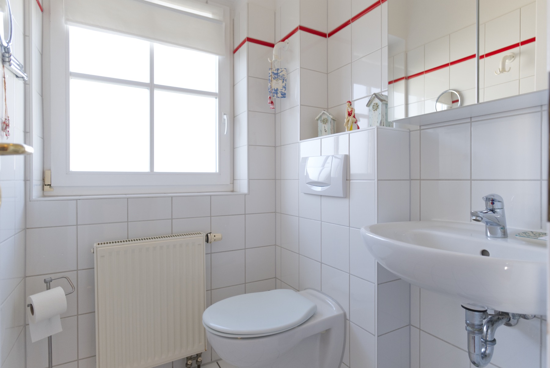 Die Küche mit anschließendem Essbereich bietet ausreichend Platz zum Kochen und Genießen. Ein modernes Gäste-WC im Eingangsbereich rundet das Erdgeschoss funktional ab.