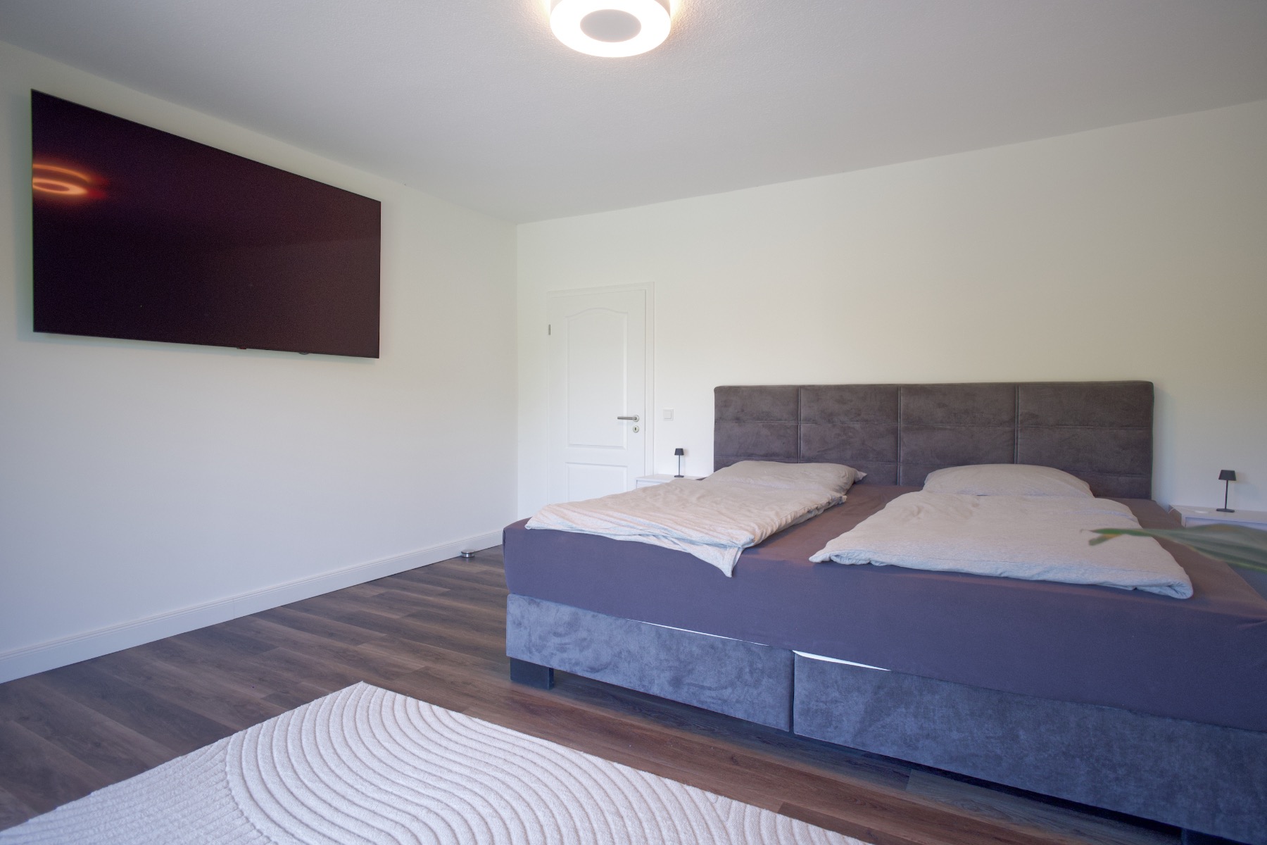 – Fußböden in den Wohnbereichen, Schlafzimmer und Küche mit Designbelag , Bäder sind gefliest